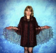 Красный пуховый палантин,Шарф из натурального козьего пуха,Паутинка №447