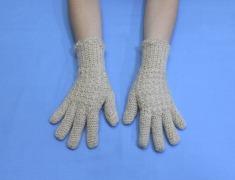 Тёмно-бежевые(светло-коричневые) пуховые вязаные перчатки ручной работы крючком №96Т