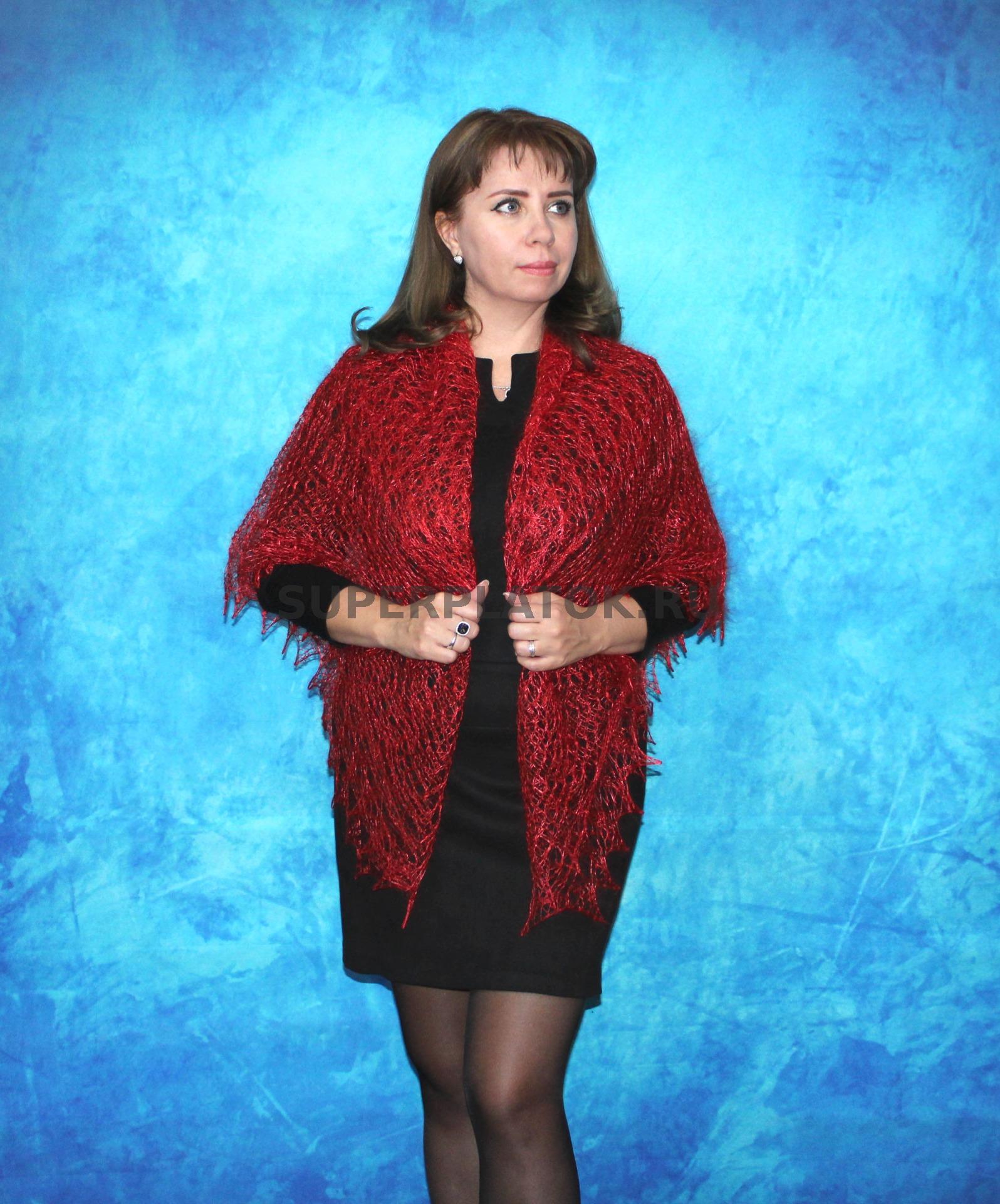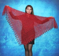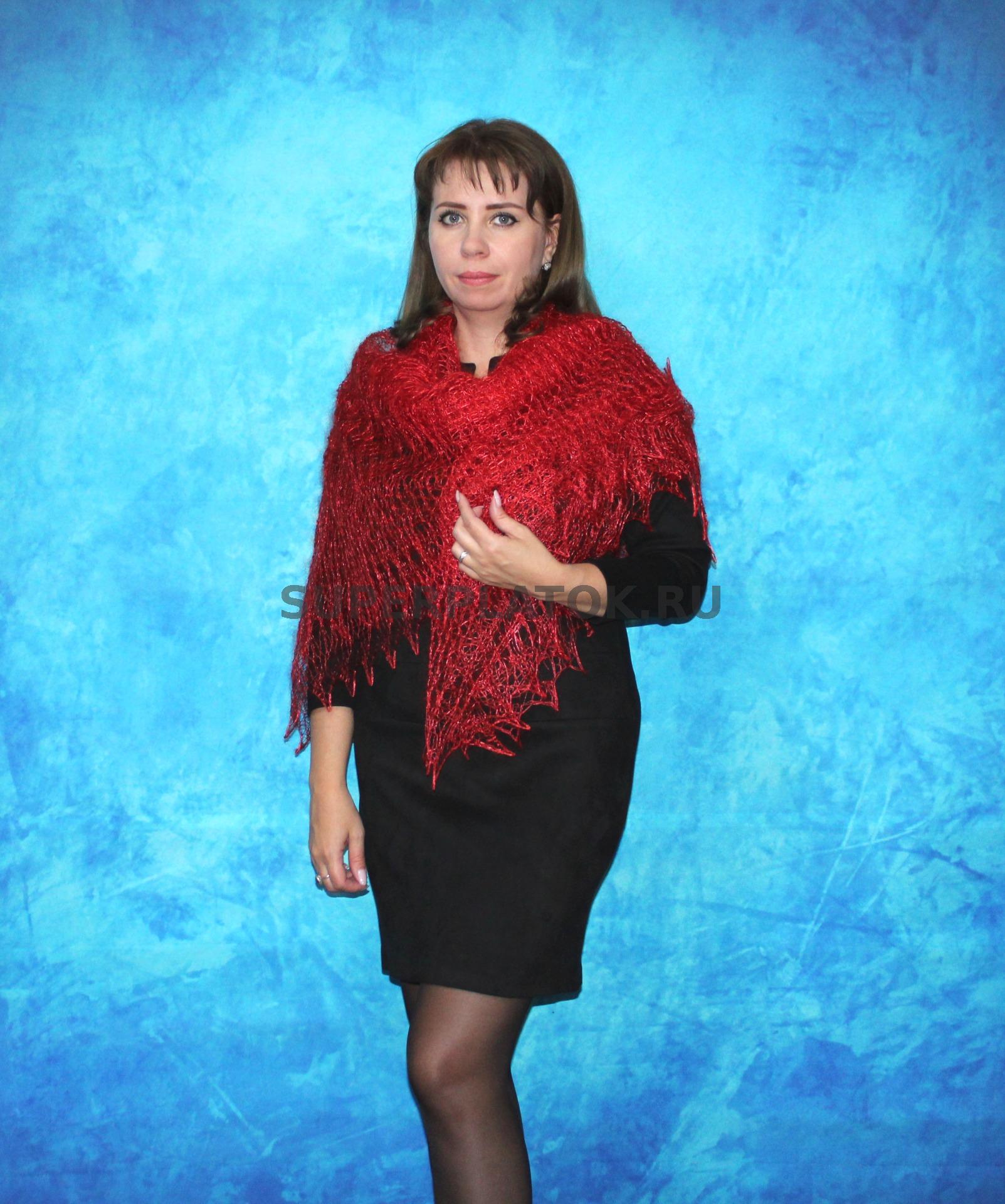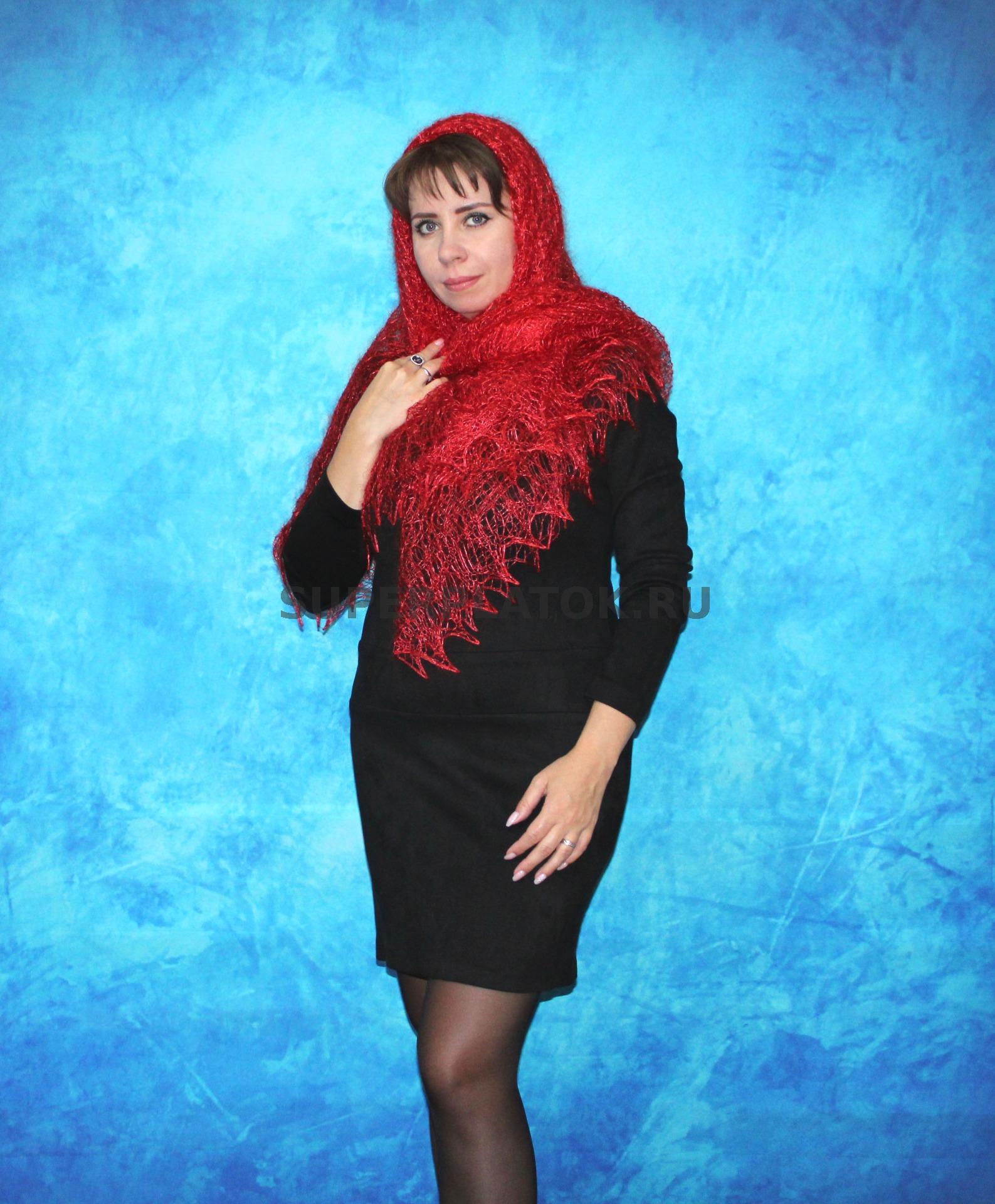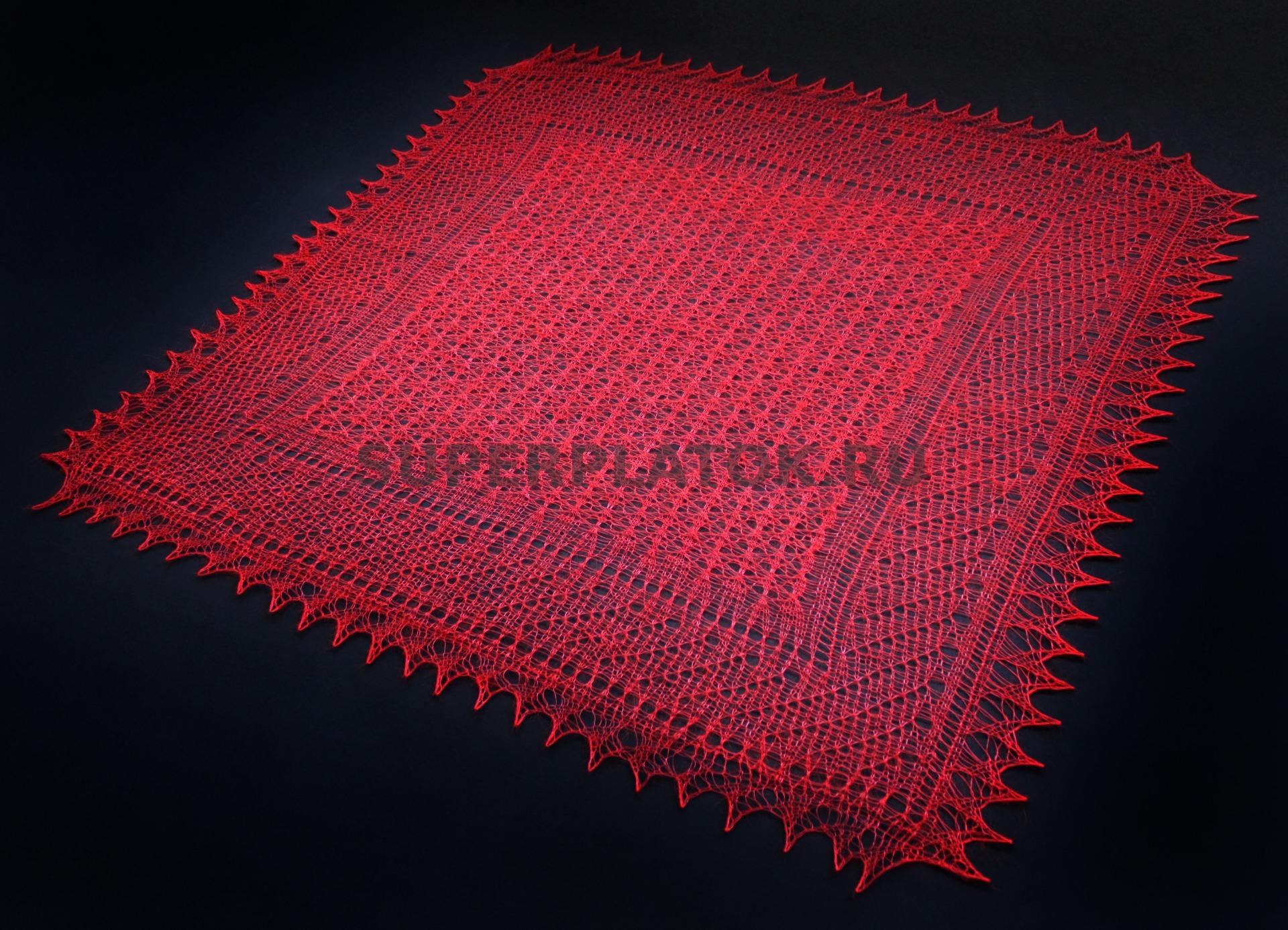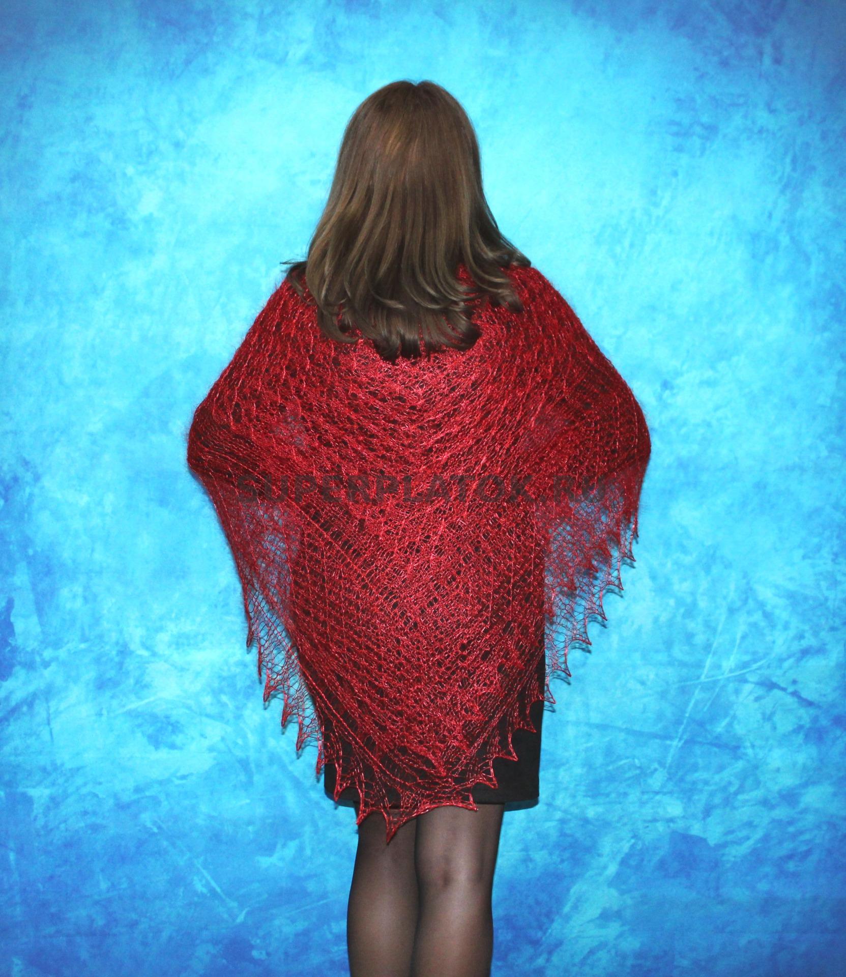 Красный пуховый платок, Ажурная паутинка, Тёплая вязаная косынка №125