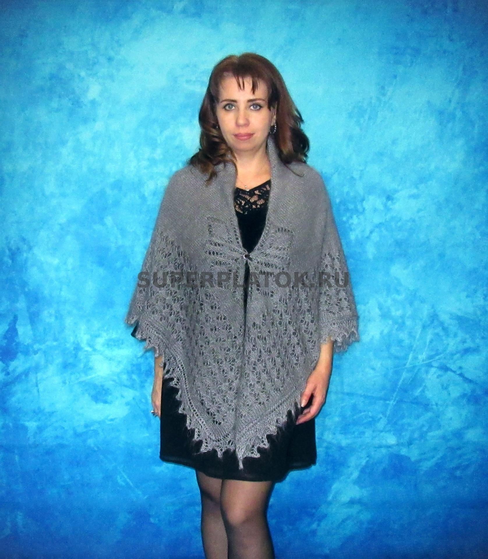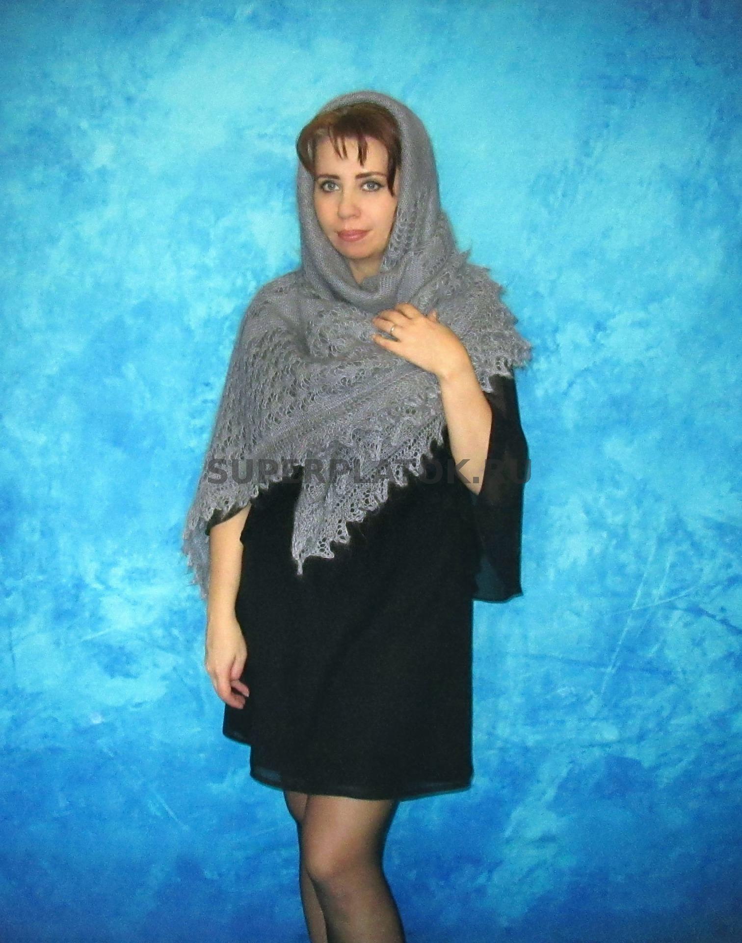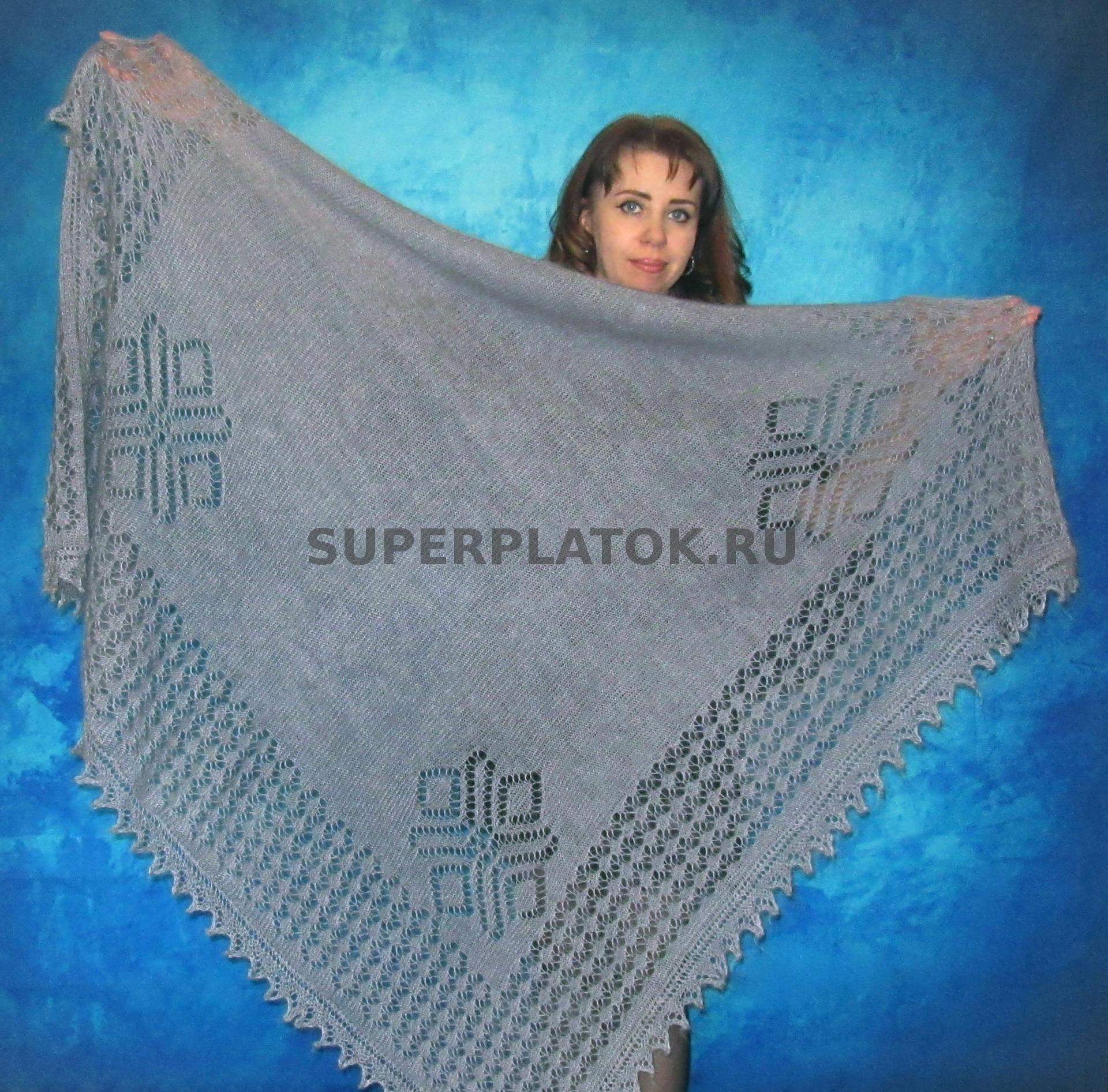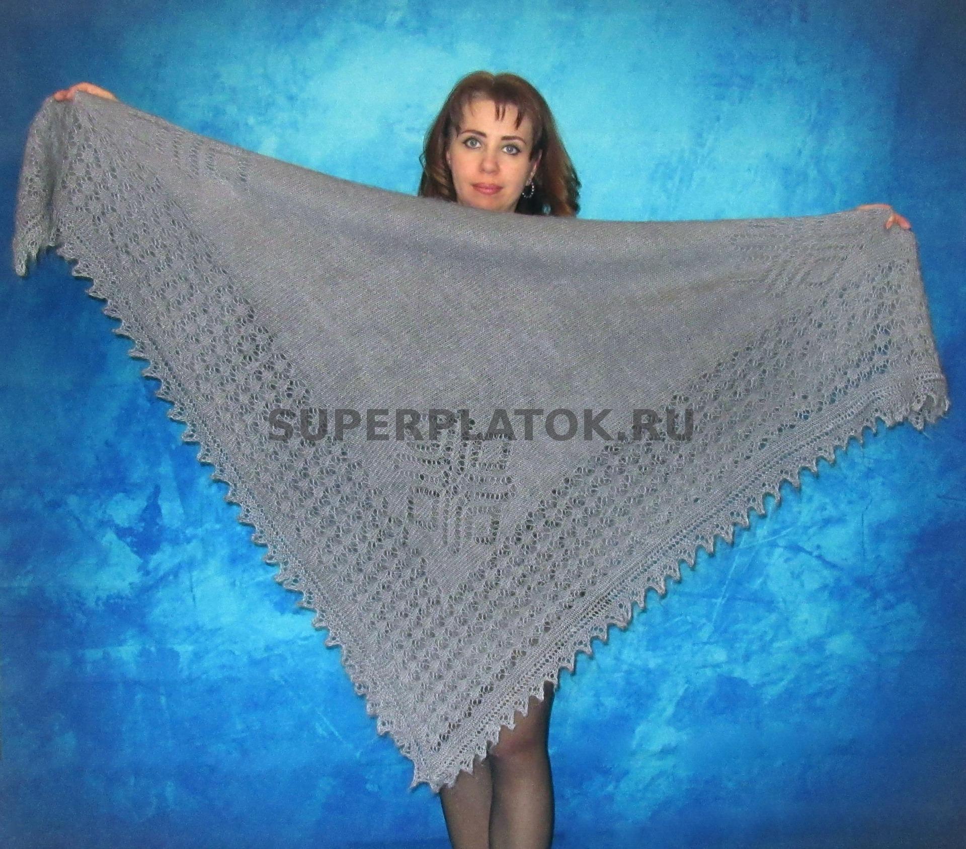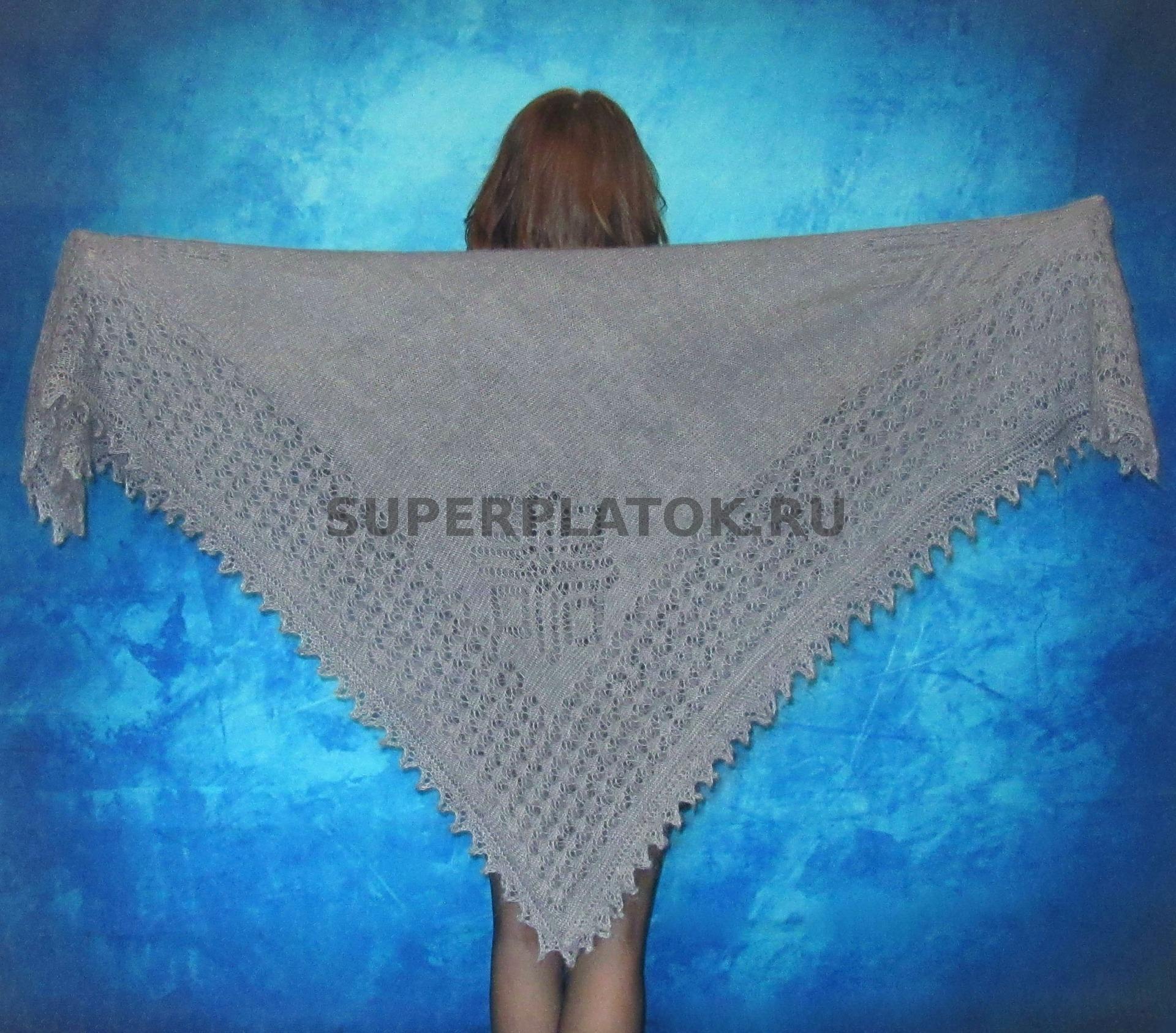 Серая пуховая плотная шаль, Косынка из козьего пуха, Тёплая накидка №8BV